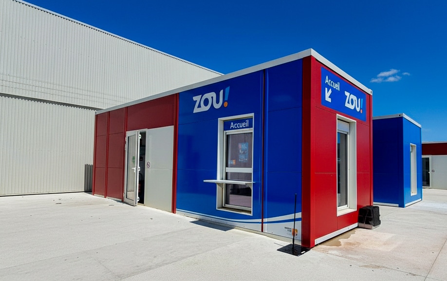 Pour répondre à l’objectif d’uniformisation et renforcer la lisibilité du site, Graphitis a conçu une intervention signalétique complète alliant esthétique, résistance et clarté fonctionnelle. Les équipes ont travaillé à partir de l’identité graphique de ZOU! pour concevoir un habillage extérieur impactant, visible de loin et parfaitement intégré à la structure modulaire du site.